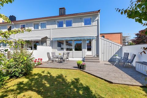 Lund – Renovert enderekkehus med solrik hage. God planløsning over 4 plan. Garasje i rekke medfølger.