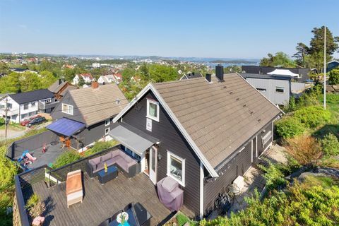 Vågsbygd – Flott enebolig m/ garasje og stor terrasse – Høyt og fritt beliggende med gode sol- og utsiktsforhold – Rolig og barnevennlig – Turterreng