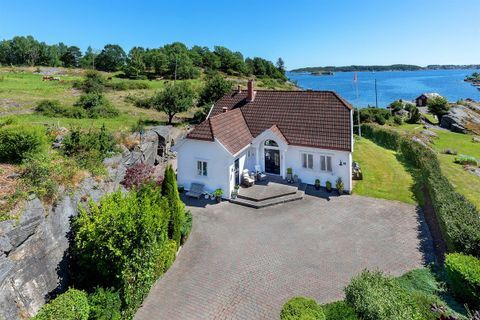 Ytre Vågsbygd/Møvig – Unik strandeiendom med nyere enebolig, sjøbod, stort bryggeanlegg med plass til flere båter og badeplass, strandlinje og dobbel garasje. Solrik og rolig beliggenhet i naturskjønne omgivelser.