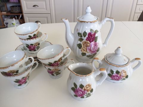 Gamle mokkakopper med tilbehør
