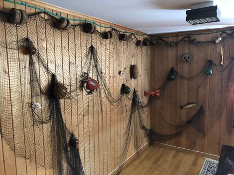 Gammelt fiskegarn med tilbehør