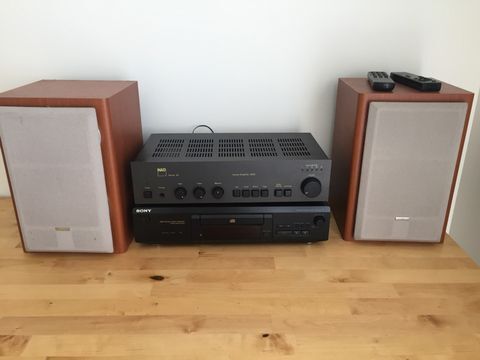 Sony CD-spiller, forsterker og to høyttalere