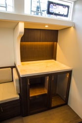 Blant annet liker han ikke å se en haug med skjermer og elektronisk utstyr når han går ned under dekk. Derfor har kapteins-pulten blitt erstattet med en vinbar, og fått ny plassering på motsatt side av byssa. Der er samtlige instrumenter skjult bak et panel, kledd i mørkt treverk.