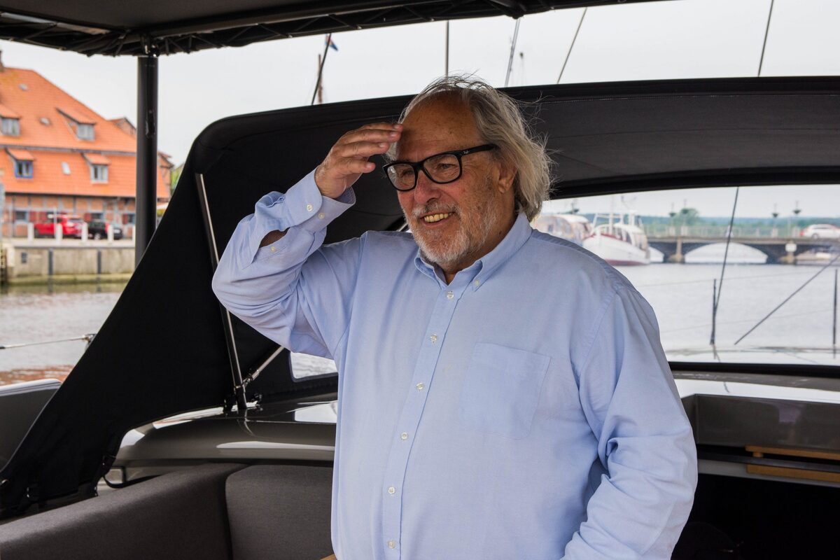 Michael Schmidt har lang fartstid som båt-konstruktør, og har blant annet bygget opp Hansa Yachts. Han ankommer havnen i en sort Aston Martin Rapide, og i tillegg til å bygge seilbåter samler han på klassiske biler.