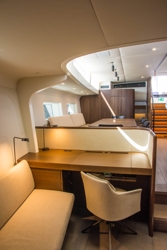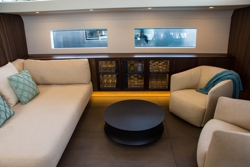 Under dekk venter en gedigen salong, der store vinduer i flere høyder sørger for at det er like lyst og trivelig under dekk som det er i en moderne hytte. Over alt dukker det opp små detaljer som tydelig viser at Y9 er bygget av folk som har vært mye til sjøs.