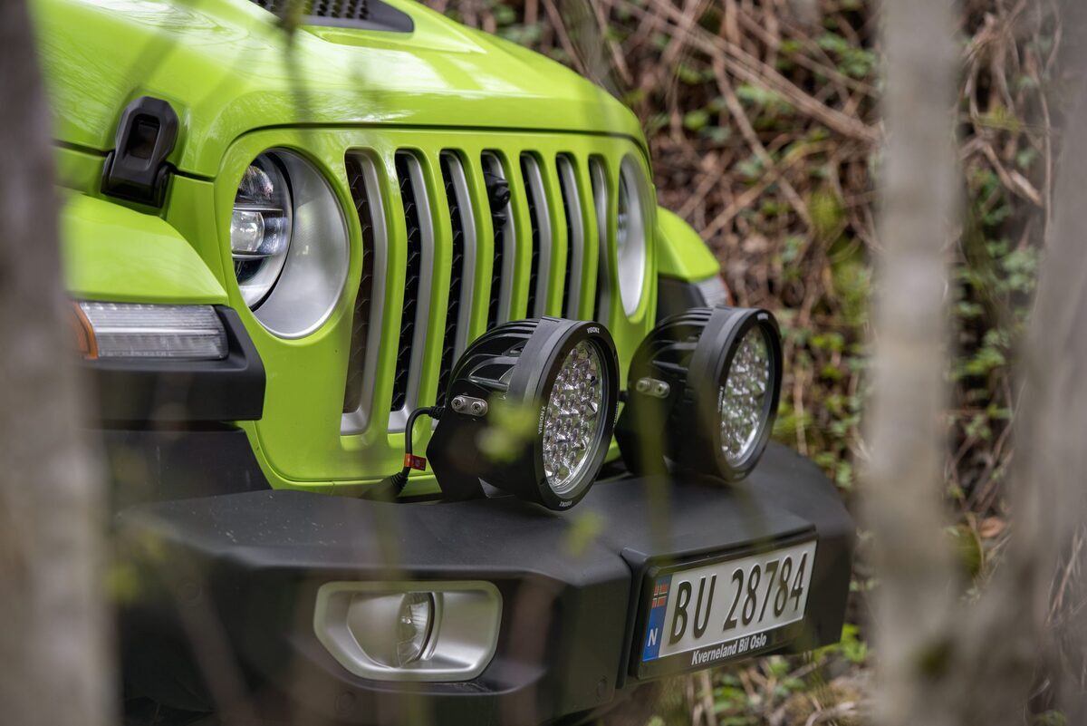 IKON: Forfra minner Gladiator om de øvrige Jeep-modellene, men det store lasteplanet gir bilen større og mer praktisk i mange sammenhenger.