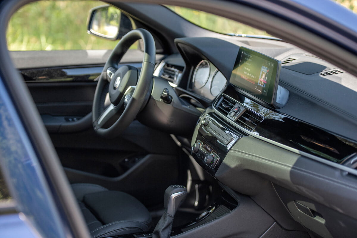 BMW X2 kom på markedet i 2018 og baserer seg på BMW X1 som er enda eldre. At dette ikke er dagsferske biler vises i litt for stor grad når du befinner deg på innsiden. En umiddelbar påminnelse er girspaken som stikker seg frem og ødelegger for harmonien. (Hopper du rett over i den langt nyere BMW 1-serien, forstår du fort hva dette har å si for opplevelsen av interiøret).