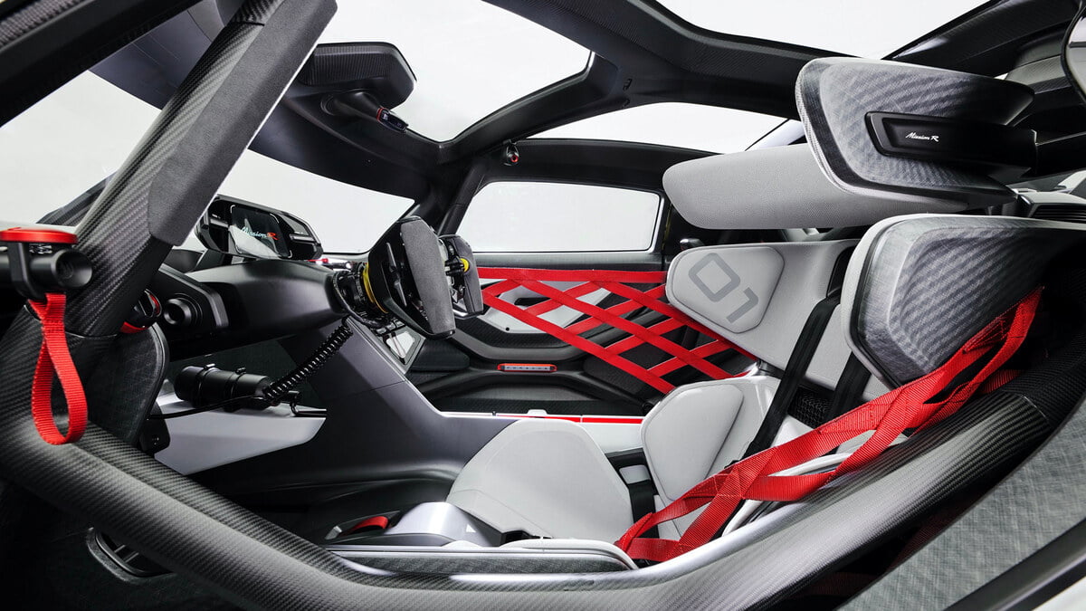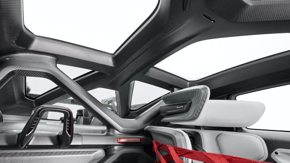 Mission R har også et nyskapende veltebur. I motsetning til et tradisjonelt veltebur av stål, som sveises til karosseriet, har konseptet et karbonfiberarmert bur, integrert i taket. Det holder vekten i sjakk. Raceren veier bare 1.500 kilo.