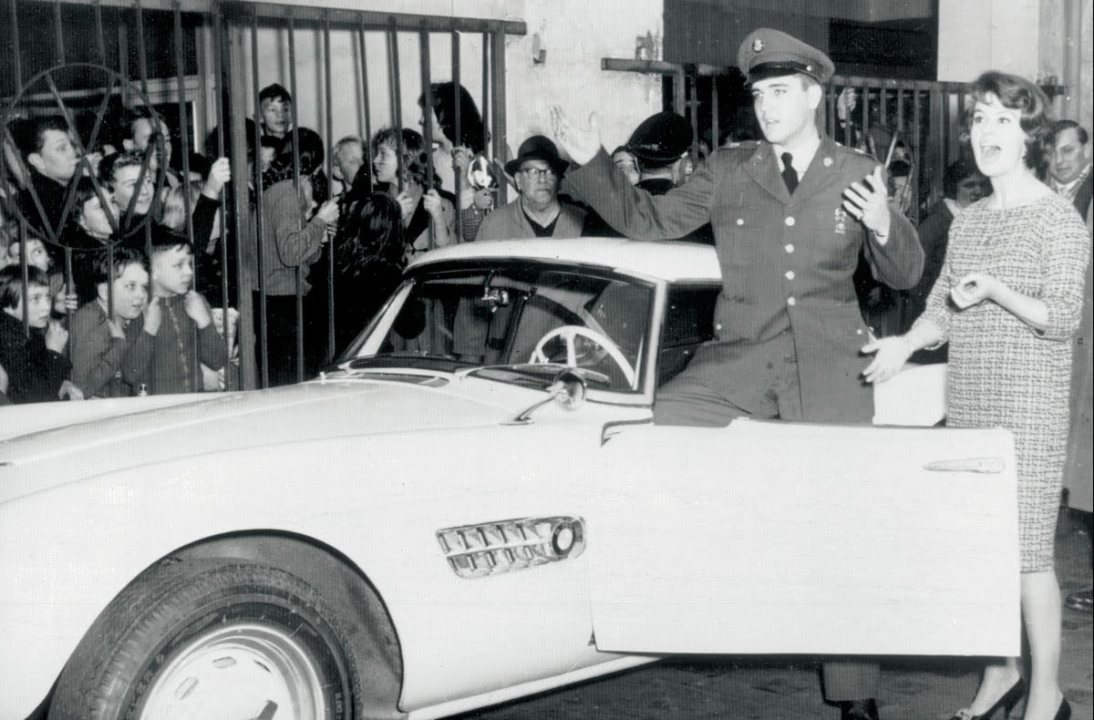 Elvis kjøpte bilen mens han var i den amerikanske hæren i Tyskland, og han falt for den lekre og nette sportsbilen. Og det var ikke helt feil for BMW at han ønsket den heller, for de tok nok av pressebilder for anledningen.