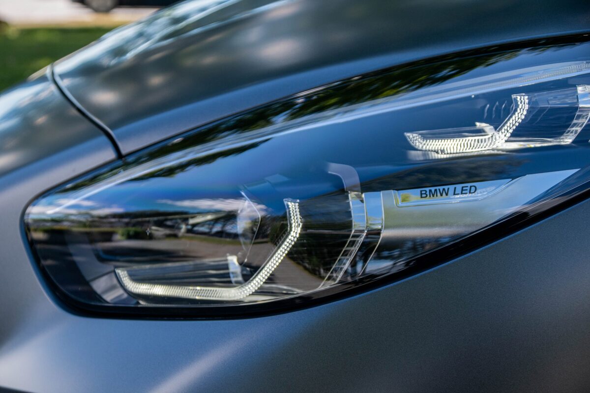 I fronten er nyregrillen smal og bred, i motsetning til de enorme kanintennene på blant annet i4 og iX. Lyktene er også smale og strekker seg lang bakover på forskjermen, mens luftinntakene er store og gapende i den brede og lave fronten.