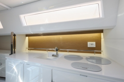 Byssa er plassert midtskips, og store vinduer langs hele båten sørger for at skipskokken kan svinge sleiva i nok naturlig lys til å unngå kulinariske grunnstøtinger. I tillegg har de også fått plass til en separat lugar lengre bak.