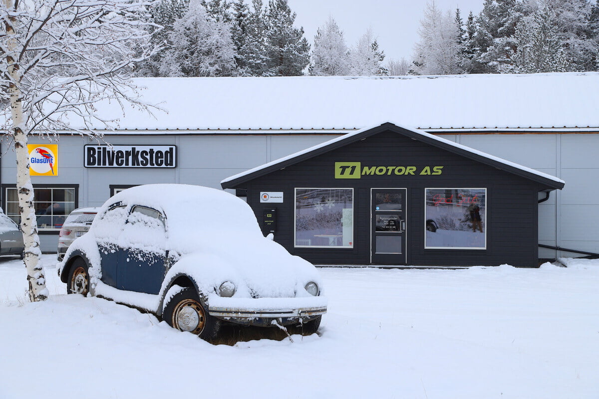 Bilens utetemperaturmåler krabber så langt ned på minusskalaen at vi nærmer oss 20-tallet på vei oppover Østerdalen. Fortsatt langt «varmere» enn de nivåer Kjell Aukrust beskrev så fargerikt, men kaldt nok for oss i det vi ankommer målet: T1 Motor på Tynset.