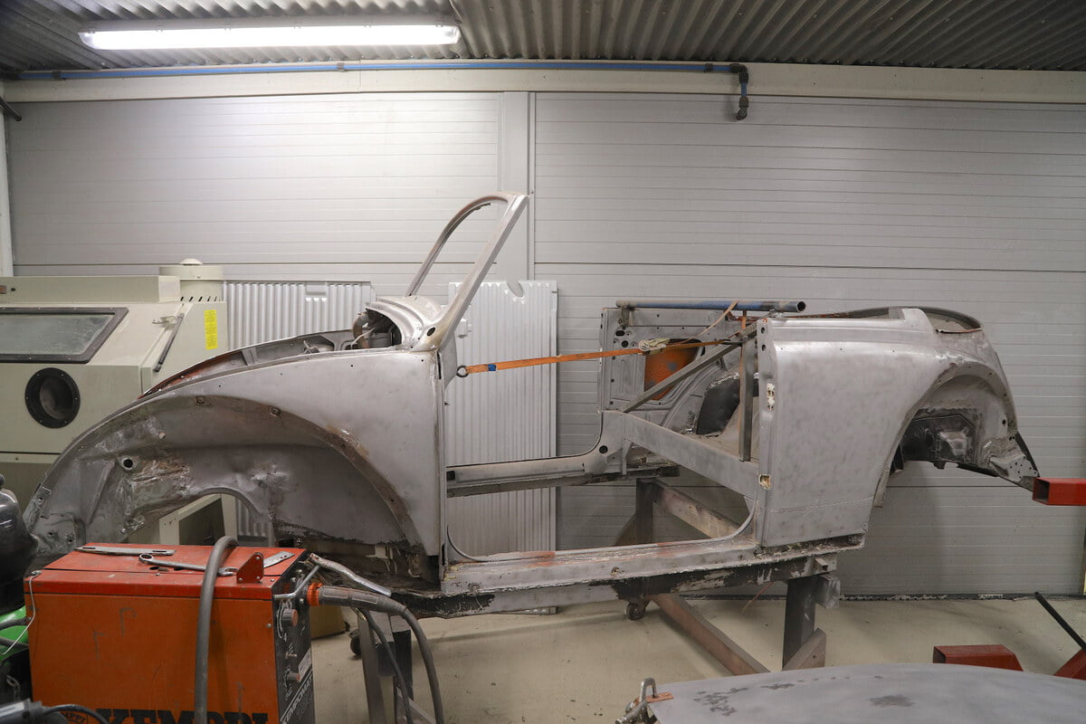 KLAR: Denne kabrioleten er klar etter en omfattende jobb og ventet bare på å bli transportert til en fornøyd kunde.
