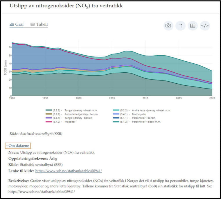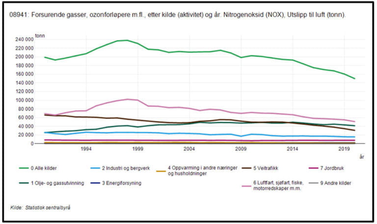 • Fra tungtransport alene ble NOx-utslippene redusert til ca. en tredel fra 1990 til 2020.