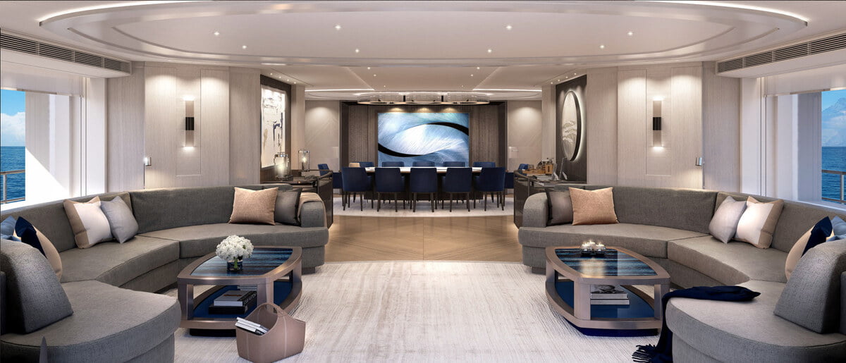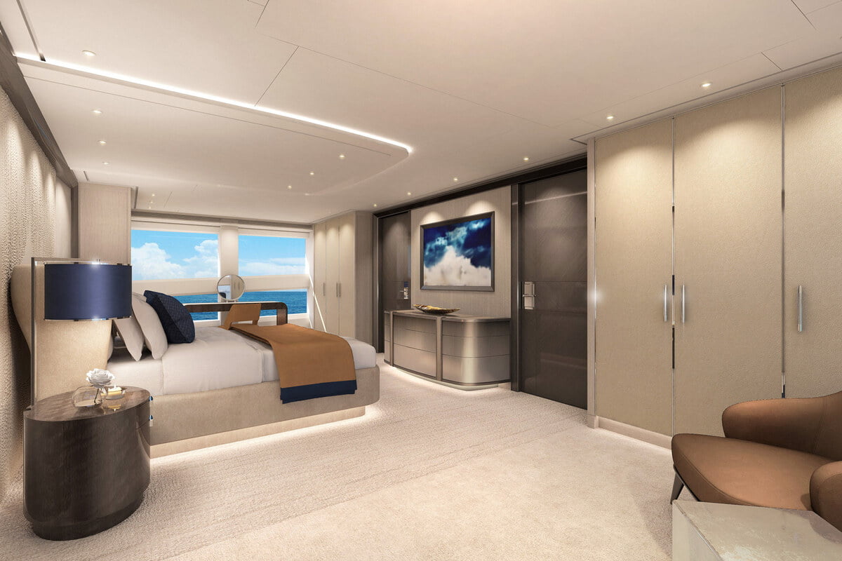 Interiøret kan du fortsatt endre hvis du ikke liker det forslaget som Heesen byr deg. Oppdelingen under dekk og forslaget til farger, materialer og møblering er utarbeidet av Harrison Eidsgaard. Designbyrået med tilholdssted i London er drevet av blant annet nordmannen Peder Eidsgaard.