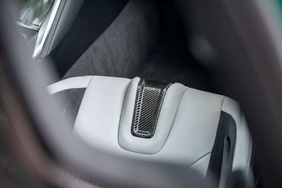 SE OG RØRE: Tofarget Merino-skinn praktisk talt overalt der det ikke er karbon gjør det fristende å stige inn i bilen.