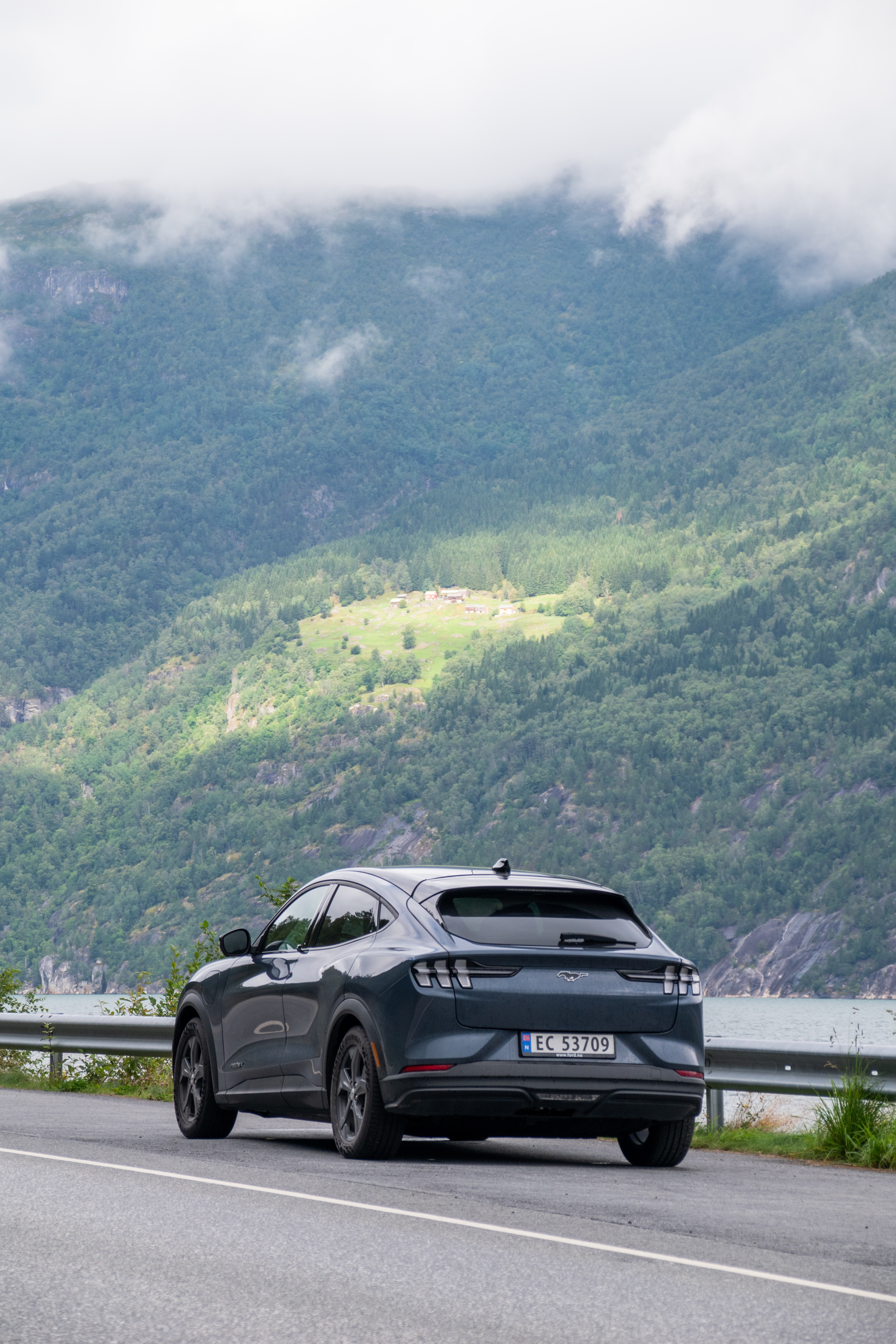 Det er ikke alt du klarer å regenerere ned de bratte og svingete veien ned til Eidfjord heller, så rekkevidden får svi. Sleng på et par forbikjøringer av bobiler og andre sinker, samt bråbremsinger på grunn av sløve sjåfører og sauer i veien og WLTP får kjørt seg.