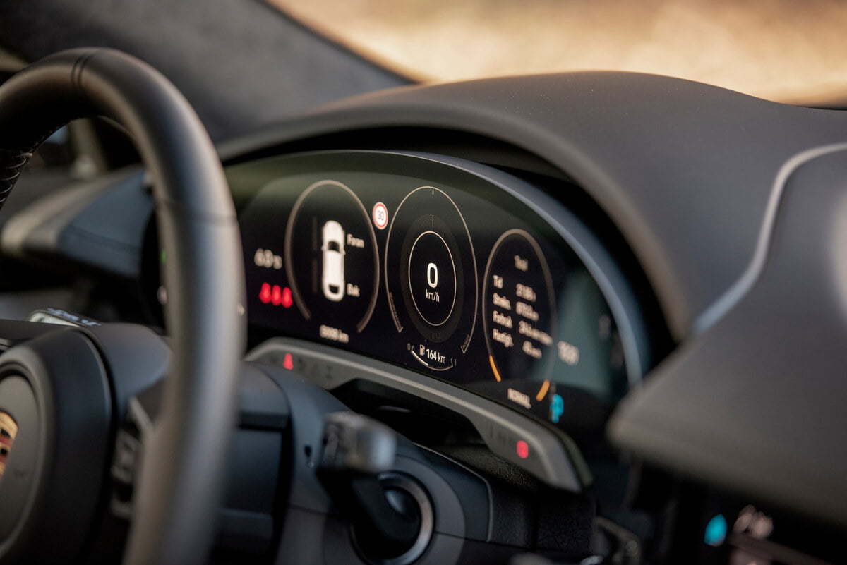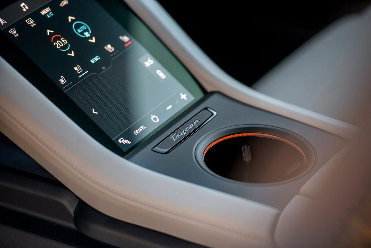 GRATIS SKJERM: Det er mye ekstrautstyr Ä legge til nÄr du kjÞper en Porsche Taycan, men skjermen mellom sjÄfÞr og passasjer fÄr du med gratis.