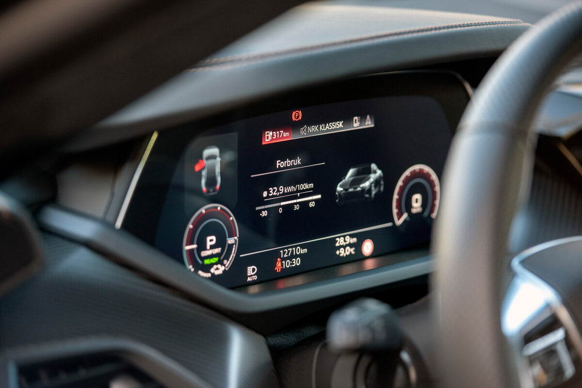 PÄ interiÞrsiden kan det derfor synes som at Audi har passet pÄ Ä ikke ta for hard i, som er synd. Dette er jo den elektriske toppmodellen deres, sÄ hvorfor holde tilbake pÄ luksus og eksentriske lÞsninger?