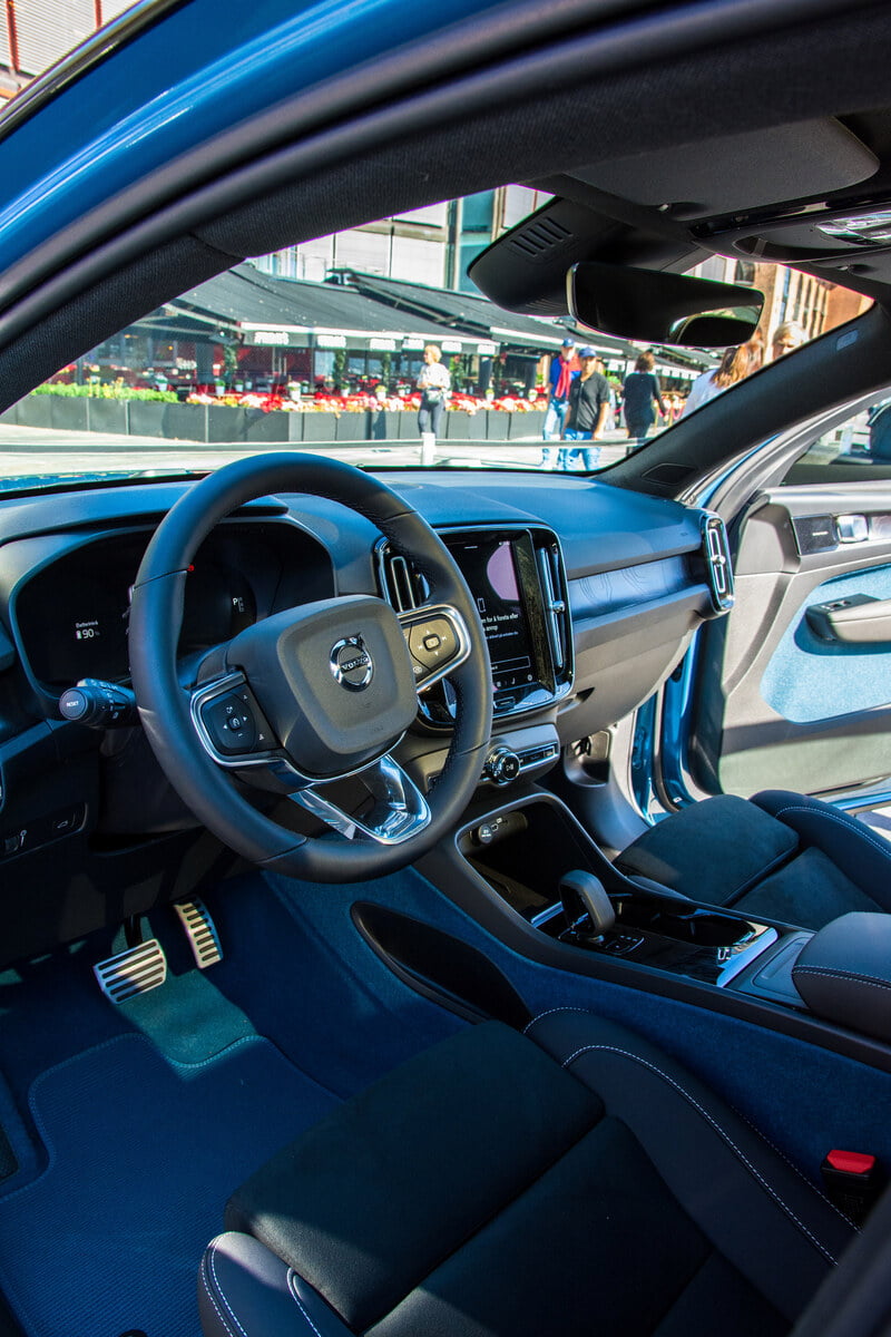 Solen skinner på Aker Brygge og en koboltblå Volvo C40, som ifølge kommunikasjons og PR-ansvarlig for Volvo Car Norway Erik Trosby skal symbolisere endringen selskapet er i ferd med å gjennomføre. Fargen heter forresten «Fjord blue» og er en av nyhetene de byr på. For å unngå at det fremmøtte pressekorpset tråkker i opplagte spor har de like godt parkert en Volvo XC40 Recharge Twin ved siden av.