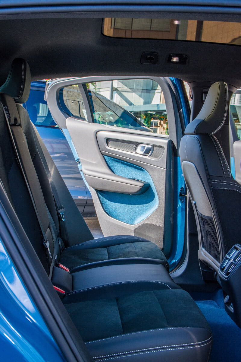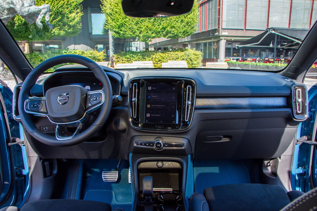 Forsetene er som regel noe Volvo er gode på, og dette er intet unntak. De er tilsynelatende kledd i en blanding av skinn og tekstiler, men Volvo opplyser at de ikke skreller kuer for å selge elbiler. I stedet benyttes kunstskinn, og det føles like bra mot håndflatene som ekte vare når en griper det tykke rattet.