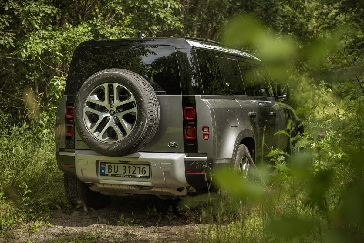 Å la seg friste av en ny Land Rover Defender, som for eksempel den ladbare hybriden på bildene, blir ikke billig. Med utstyr koster den rett over 1,4 millioner kroner, mens en ladbar Range Rover starter på ca. 1,7 millioner kroner, men da kommer utstyr i tillegg.