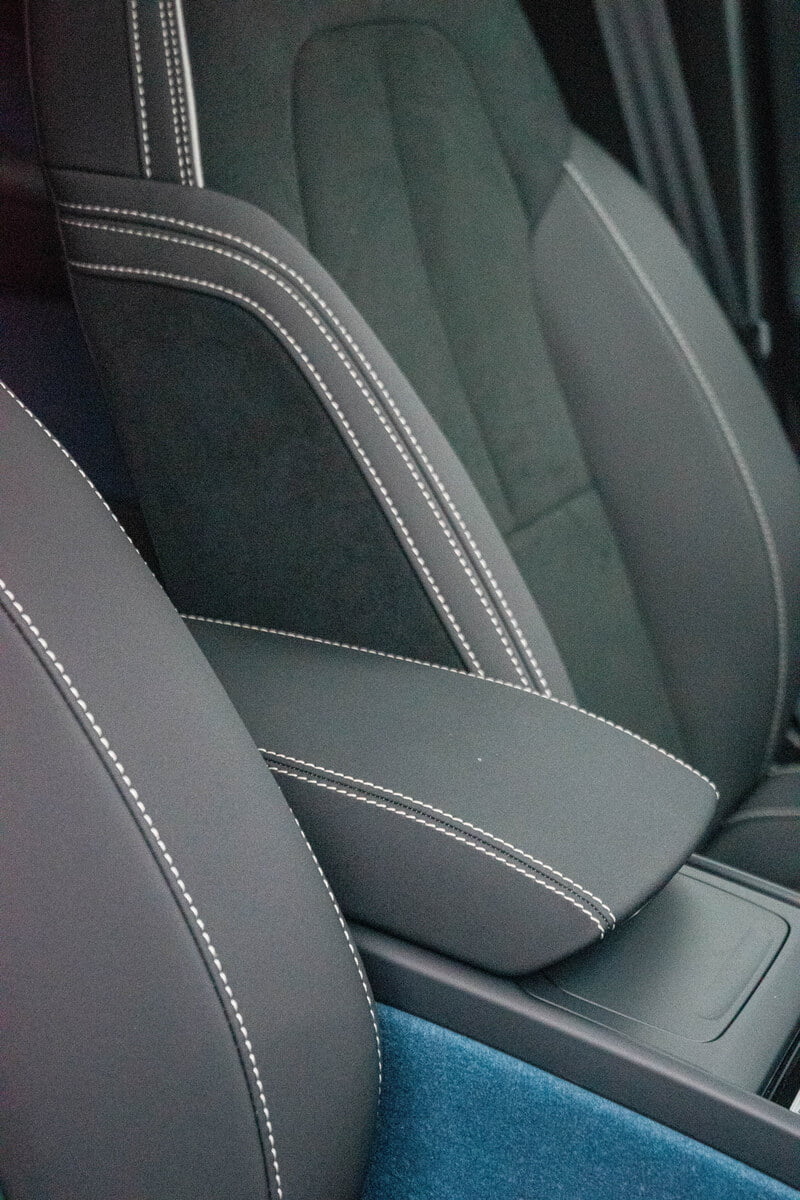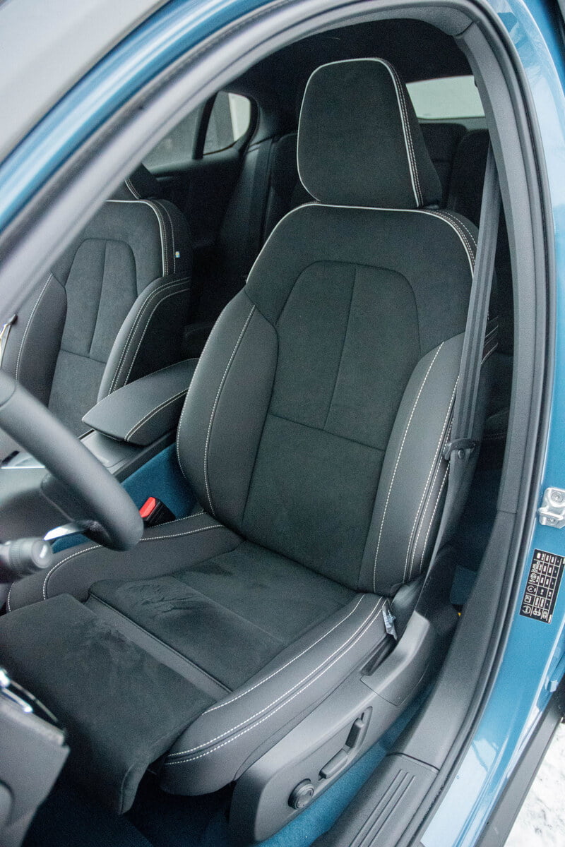 At dette er den første Volvo-modellen som leveres uten skinn i interiøret trekker ikke ned, da Microtech/Tekstil Connect både er behagelig, fint å se på og godt å ta på. Setene er behagelige med god støtte, mens plastfaktoren er lav og utformingen er slik vi kjenner den fra Volvo de siste årene. Egne paneler med lys i dører og dashbord er en lekker detalj, mens fargen Fjord Blue går igjen i lakken og teppene ombord.