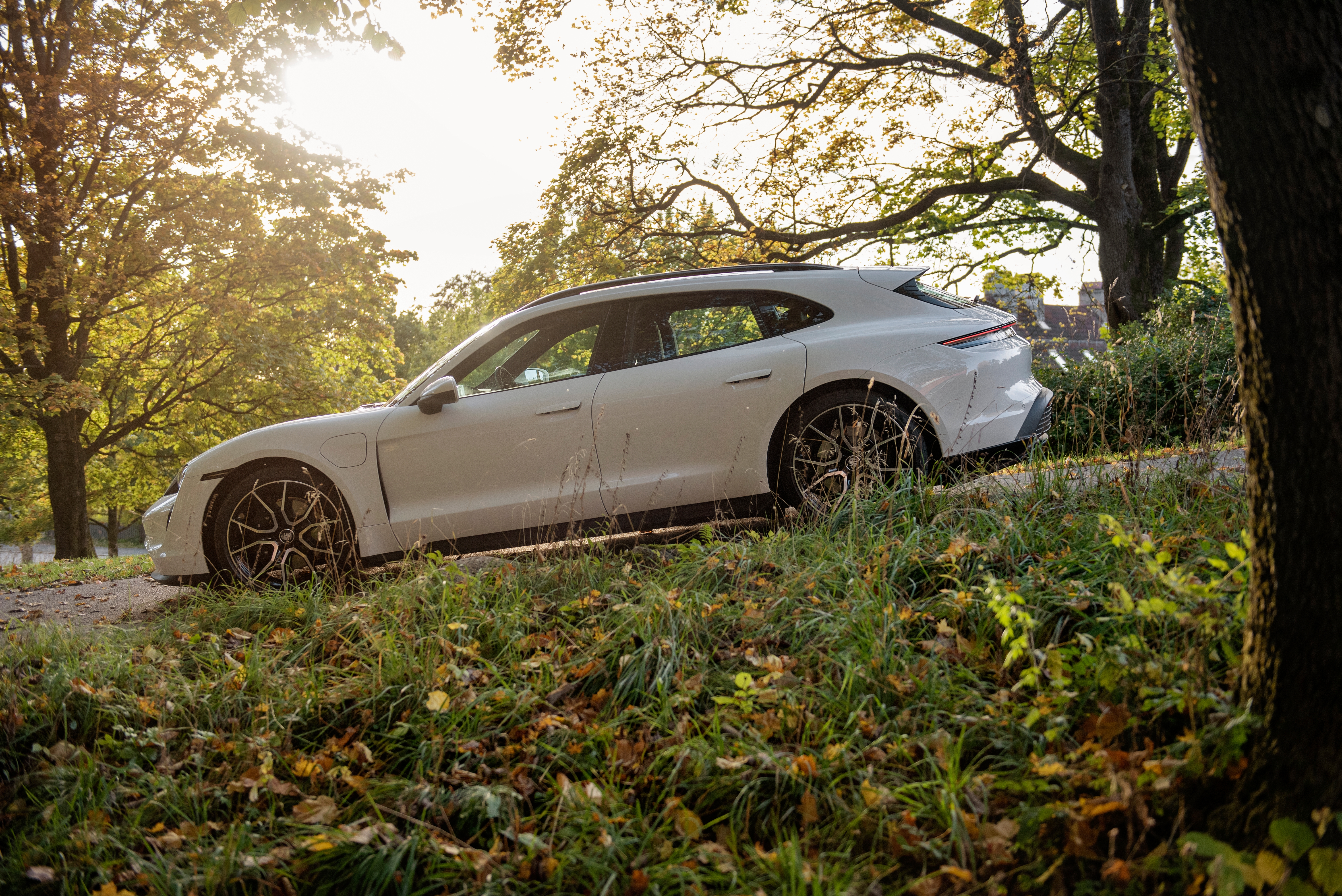 INGEN TURBO-MERKER: Porsche Taycan Sport Turismo med bakhjulsdrift har ikke motoreffekten til å matche utseendet, men ikke alle må ha ekstrem akselerasjon.
