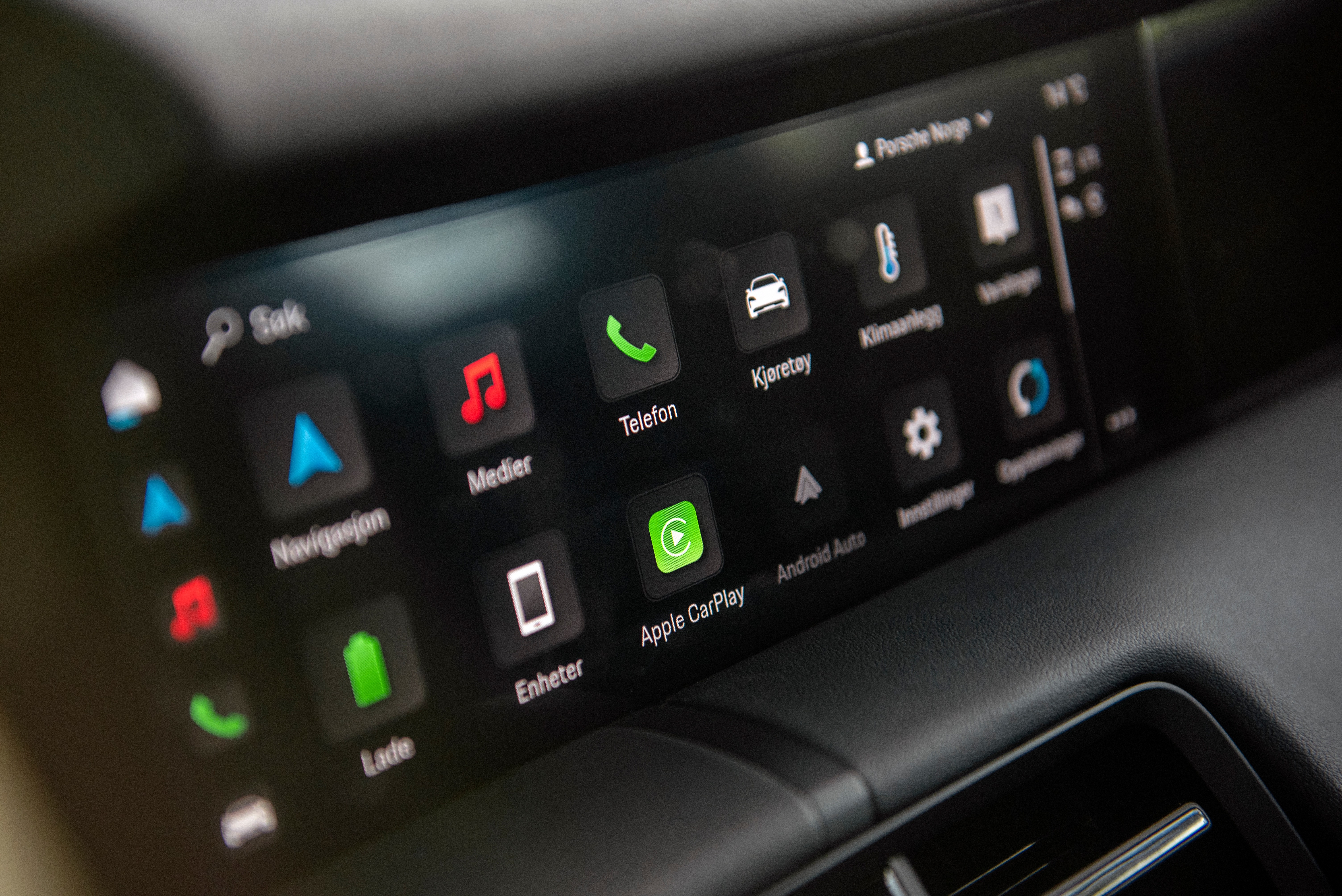 BLIR BEDRE: Taycans infotainmentsystem har fått en liten oppfriskning, men Apple CarPlay fungerte fungerte bare av og til.