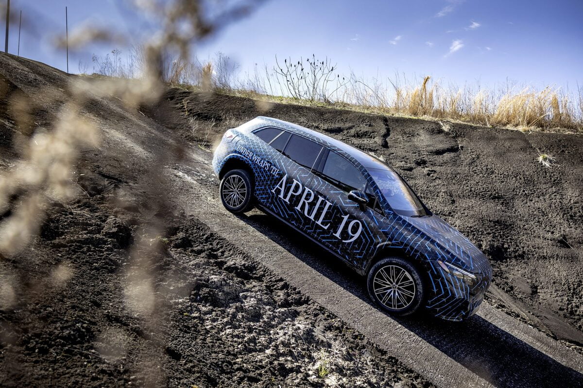 KAMUFLERT: Etter verdenslanseringen i dag19. april vil nye bilder av den nye Mercedes-Benz EQS SUV bli publisert.