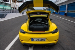 Toppfarten skal være 315 km/t, men heldigvis slipper du å passere målstreken på Estoril-banen baklengs. I tillegg til å få knekk i eksosen, har boksermotoren og girkassen fra 911 GT3 blitt snudd 180 grader for å passe inn i Cayman-en.