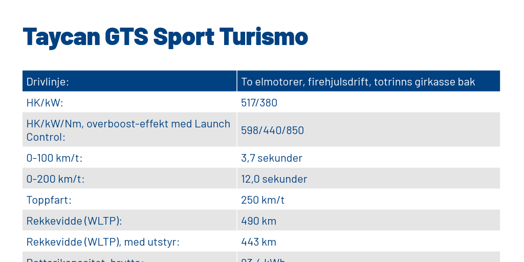 Porsches første elbil i GTS-utgave følger forøvrig den samme logikken som på 911, Cayenne, Macan og Panamera.