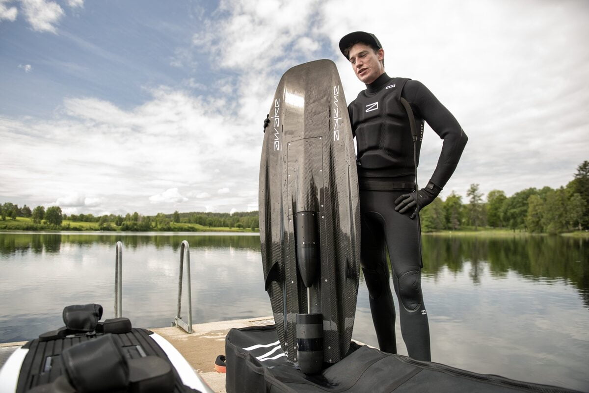 – Hvis du vil kjøre wakeboard, men ikke har båt, er et elektrisk vannjetbrett løsningen. Dessuten er terskelen for å gå ut på vannet mye lavere, da du kan ha med deg brettet i bilen og gå ut hvor du vil, sier Magnus Groseth.