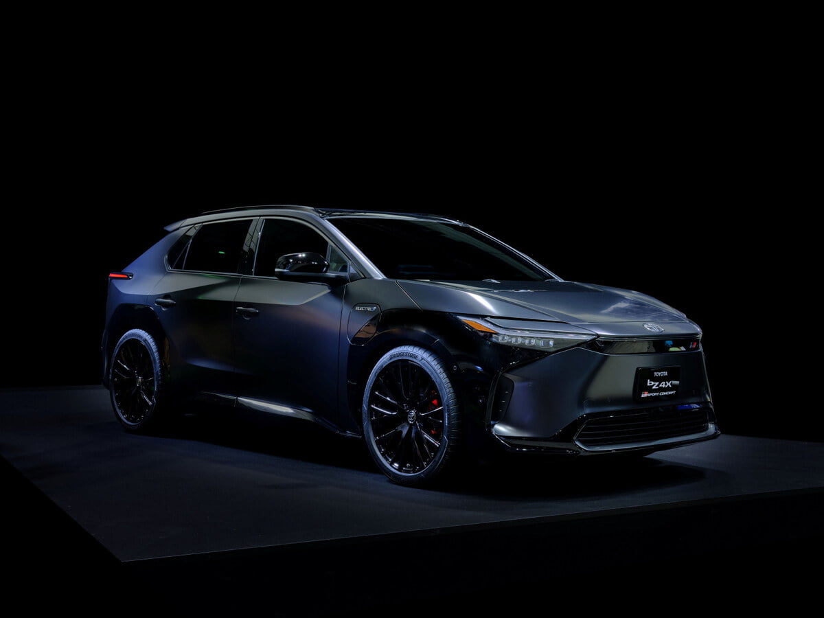 RACING TIL HVERDAGS: Litt nærmere hverdagen er den kommende elbilen Toyota bZ4X. Gazoo Racing viste frem deres variant, bZ4X GR Sport Concept, som visstnok har mer kjøreglede og økologisk ansvarlige ytelser.