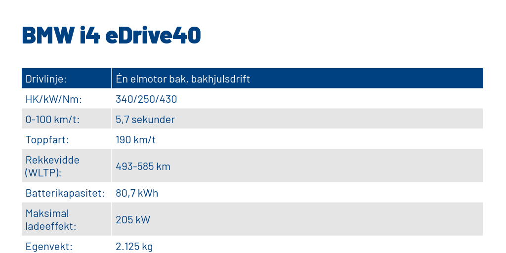 GOD GREP: BMW i4 eDrive40 er den rimeligste i4-modellen du får kjøpt. Den fås kun med bakhjulsdrift, men kanskje det kommer en med firehjulsdrift etter hvert?