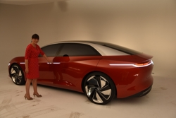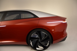 FREMTIDEN ER NÅ: Sonja Tyczka viser frem konseptbilen I.D. VIZZION i 2019, og en del av linjene ser ut til å dukke opp igjen nå.